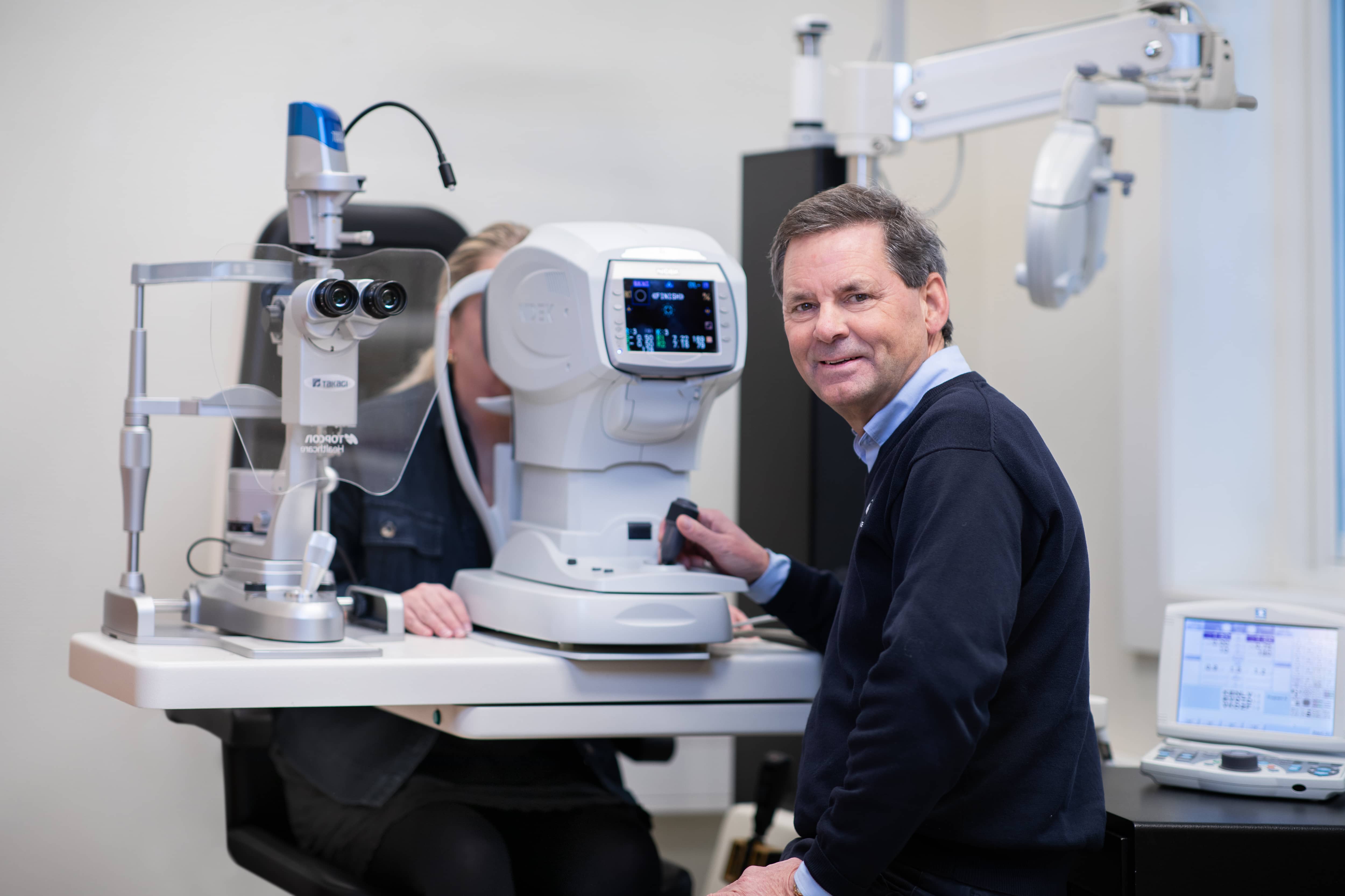 Ved hjelp av forskjellige apparater og tester undersøker deretter optikeren hvor godt du ser med høyre og venstre øye hver for seg, og hvor godt du ser med dem sammen. I tillegg undersøkes både det ytre øyet (hornhinne og øyelokk) og det indre øyet (linsen og netthinnen) ved hjelp av mikroskop som er håndholdt eller som står på stativ med hakestøtte.